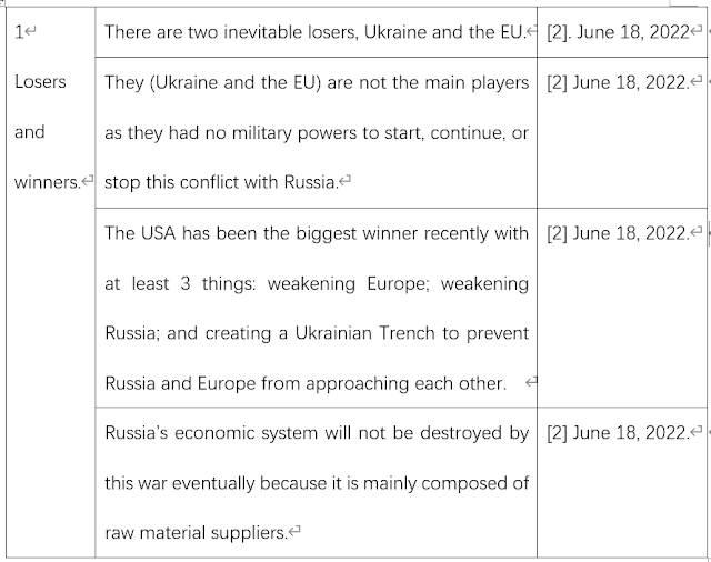 2.1 There are two inevitable losers, Ukraine and the EU. [2]. June 18, 2022